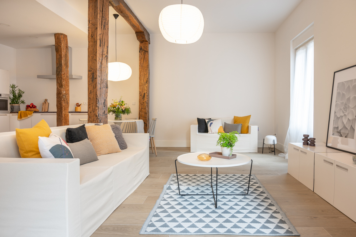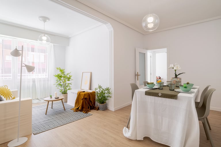 Servicio de Home Staging con mobiliario real y de cartón. Todo el material queda en la vivienda mientras dura la comercialización.